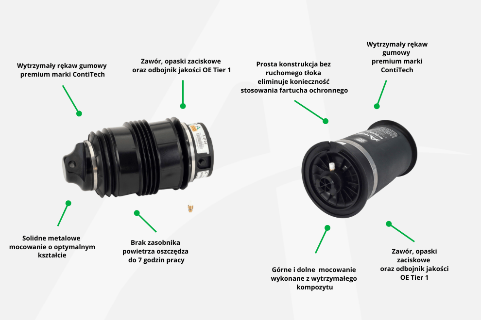 Zawieszenie pneumatyczne to jedna z wielu dziedzin, gdzie liczy się projekt, standardy produkcji i jakość wykonania oraz komponentów. Jako mechanik, masz trzy głownie opcje wyboru części: